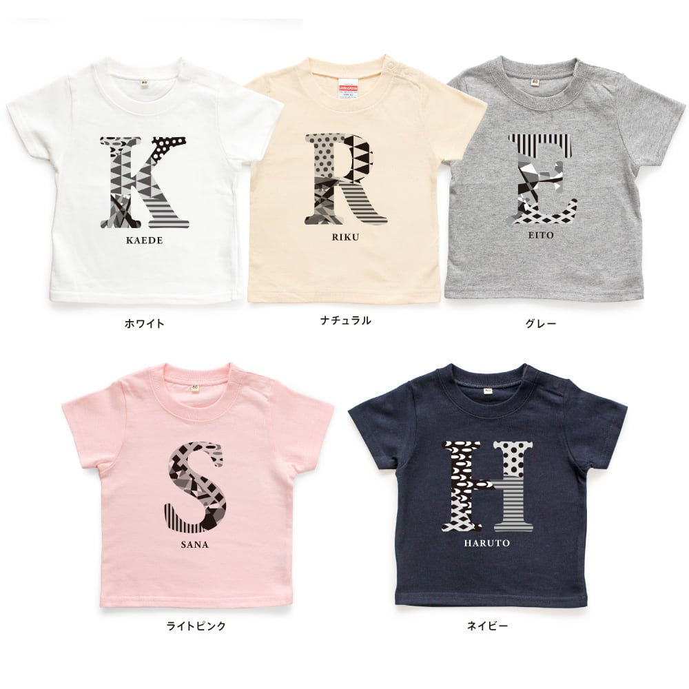 名入れTシャツ キッズ ベビー イニシャル モノトーン 80 90 100 110 120 130 140 150 名前入り 出産祝い ギフト 誕生日 男の子 女の子 バースデー 赤ちゃん服 子供服 ネーム おしゃれ かわいい 人気 おそろい 双子 兄弟 姉妹 スポーツ 運動会 イベント 記念フォト | Dessert Apparel