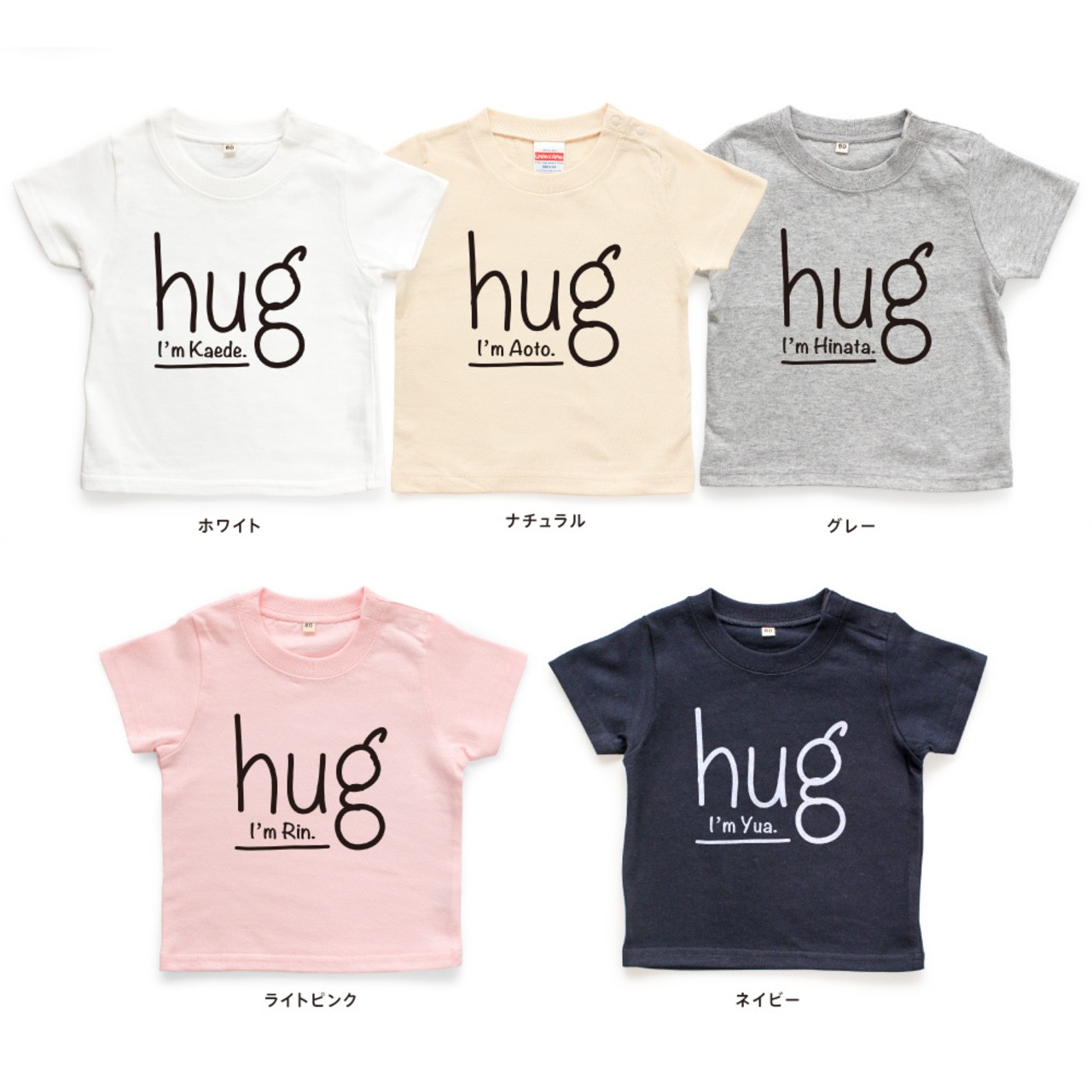 名入れTシャツ キッズ ベビー hug ハグ 80 90 100 110 120 130 140 150 名前入り 出産祝い ギフト 誕生日 プレゼント 男の子 女の子 バースデー 赤ちゃん服 子供服 ジュニア イニシャル ネーム おしゃれ かわいい 人気 おそろい 双子 兄弟 姉妹 スポーツ 運動会 イベント | Dessert Apparel