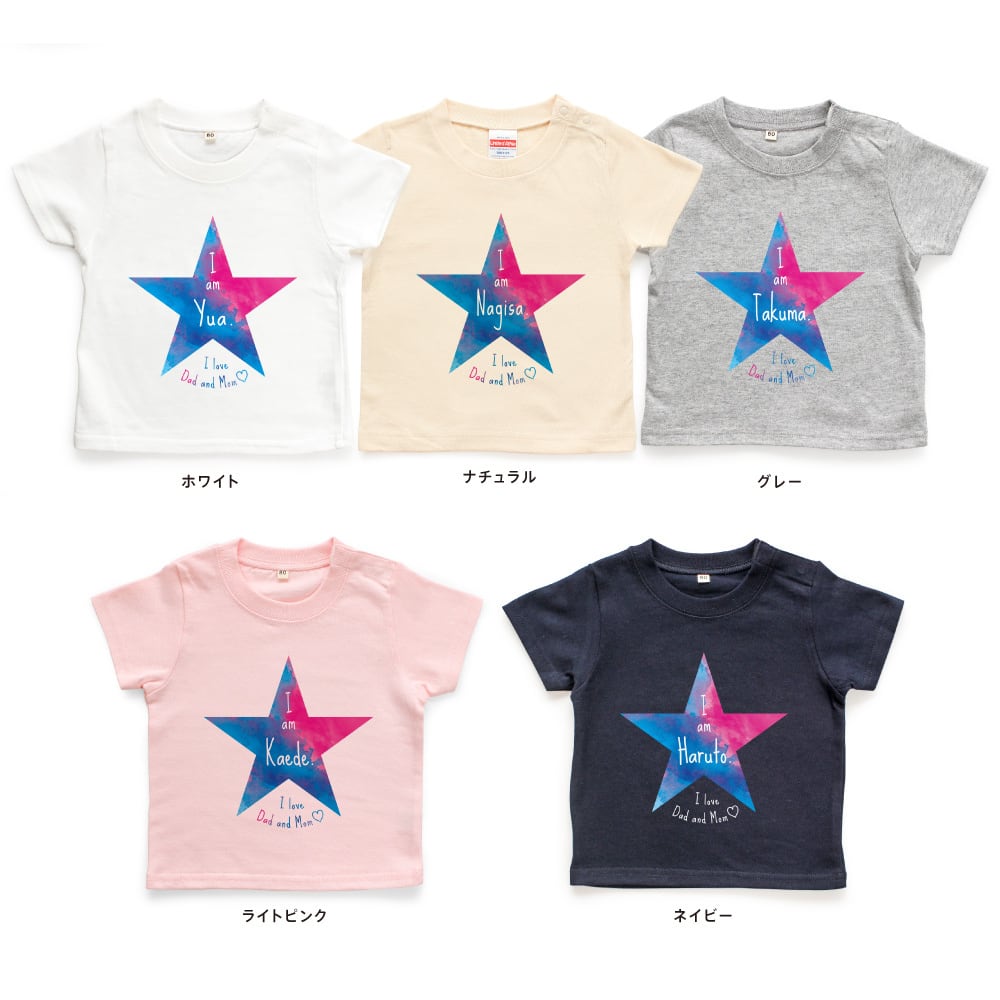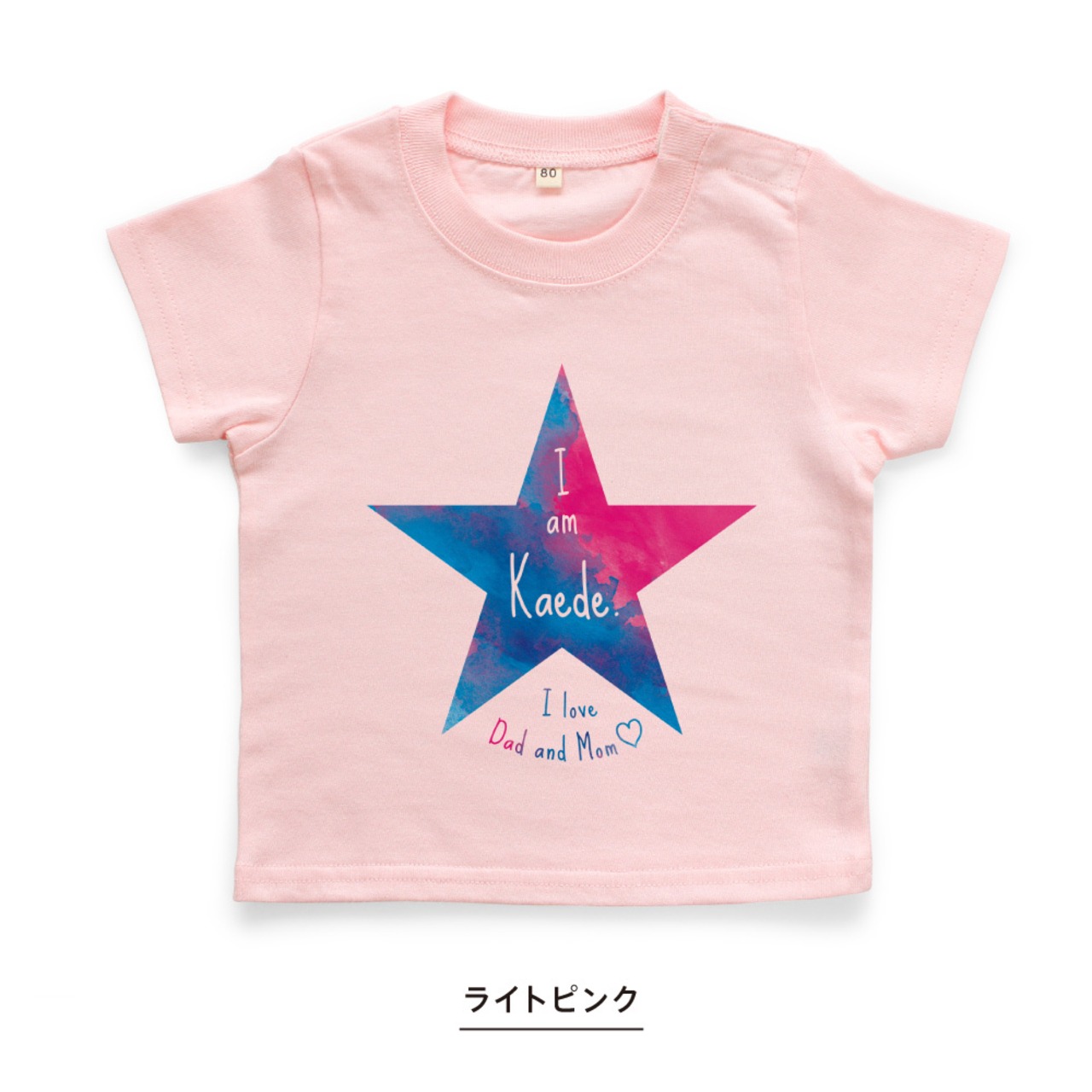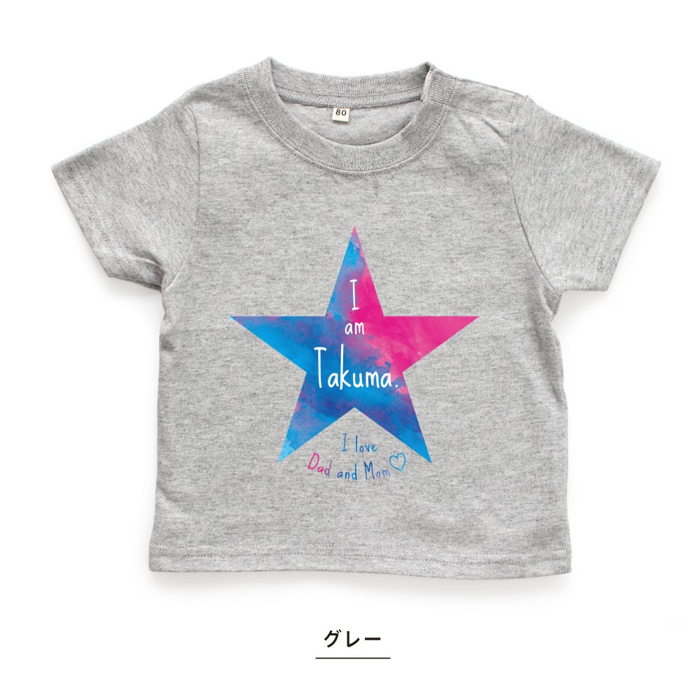 名入れTシャツ キッズ ベビー 水彩画風 ビッグ スター 80 90 100 110 120 130 140 150 名前入り 出産祝い ギフト 誕生日 男の子 女の子 バースデー 赤ちゃん服 子供服 ネーム おしゃれ かわいい 人気 おそろい 双子 兄弟 姉妹 スポーツ 運動会 イベント 記念フォト | Dessert Apparel