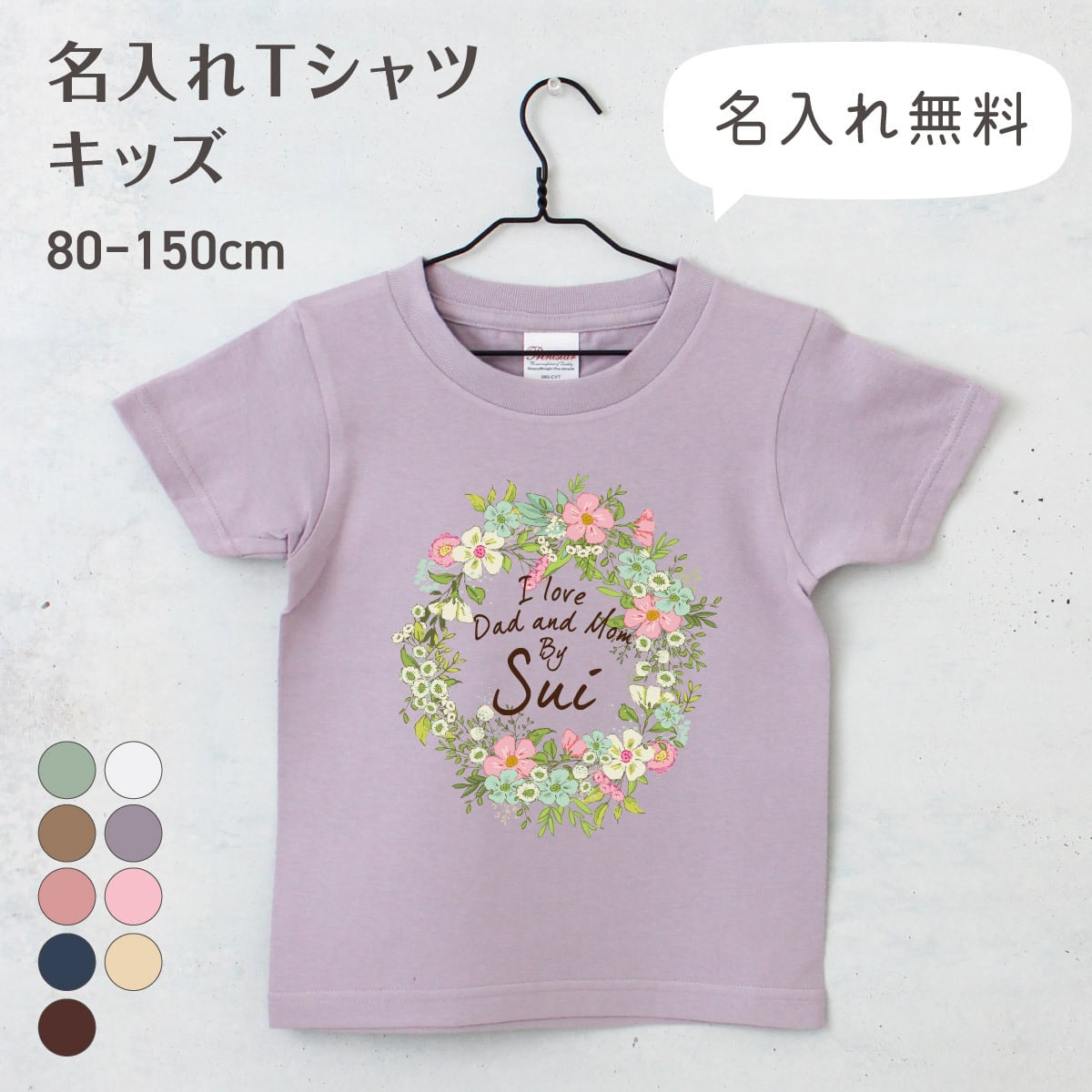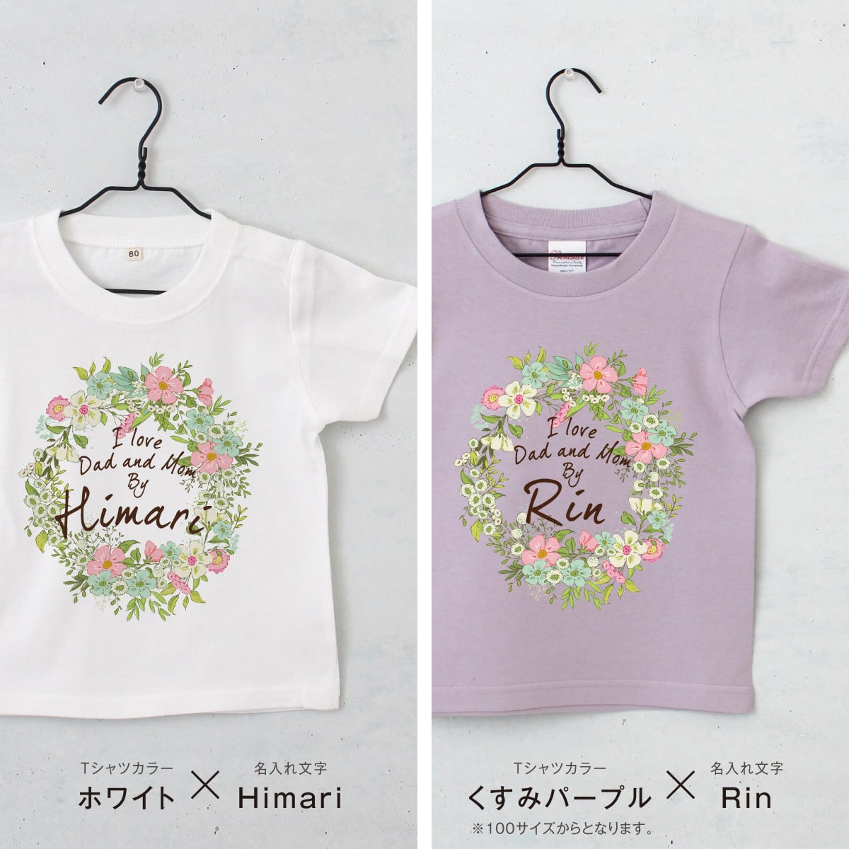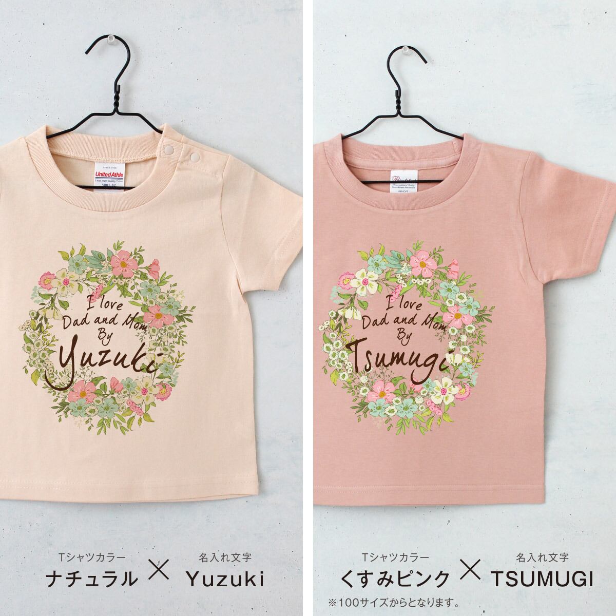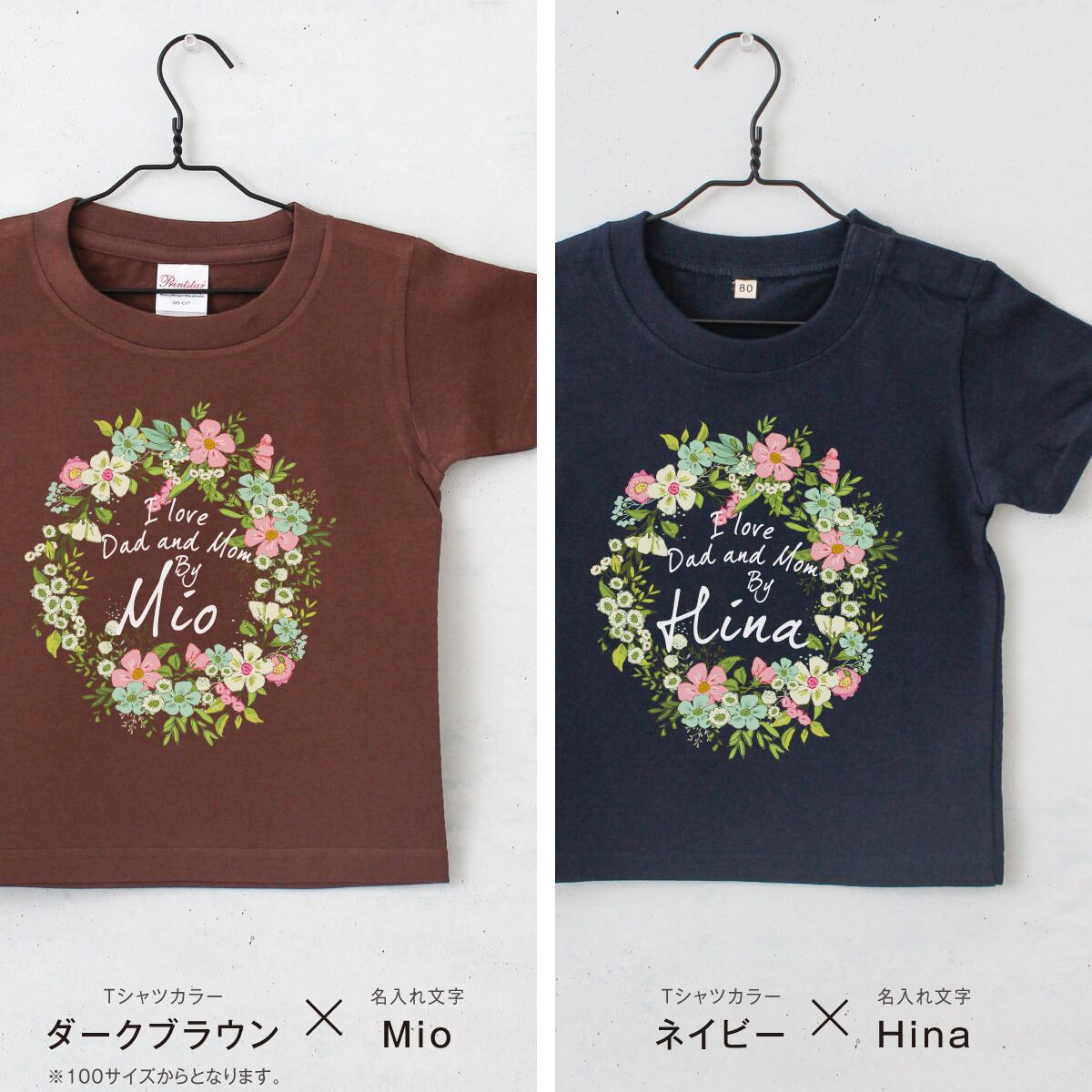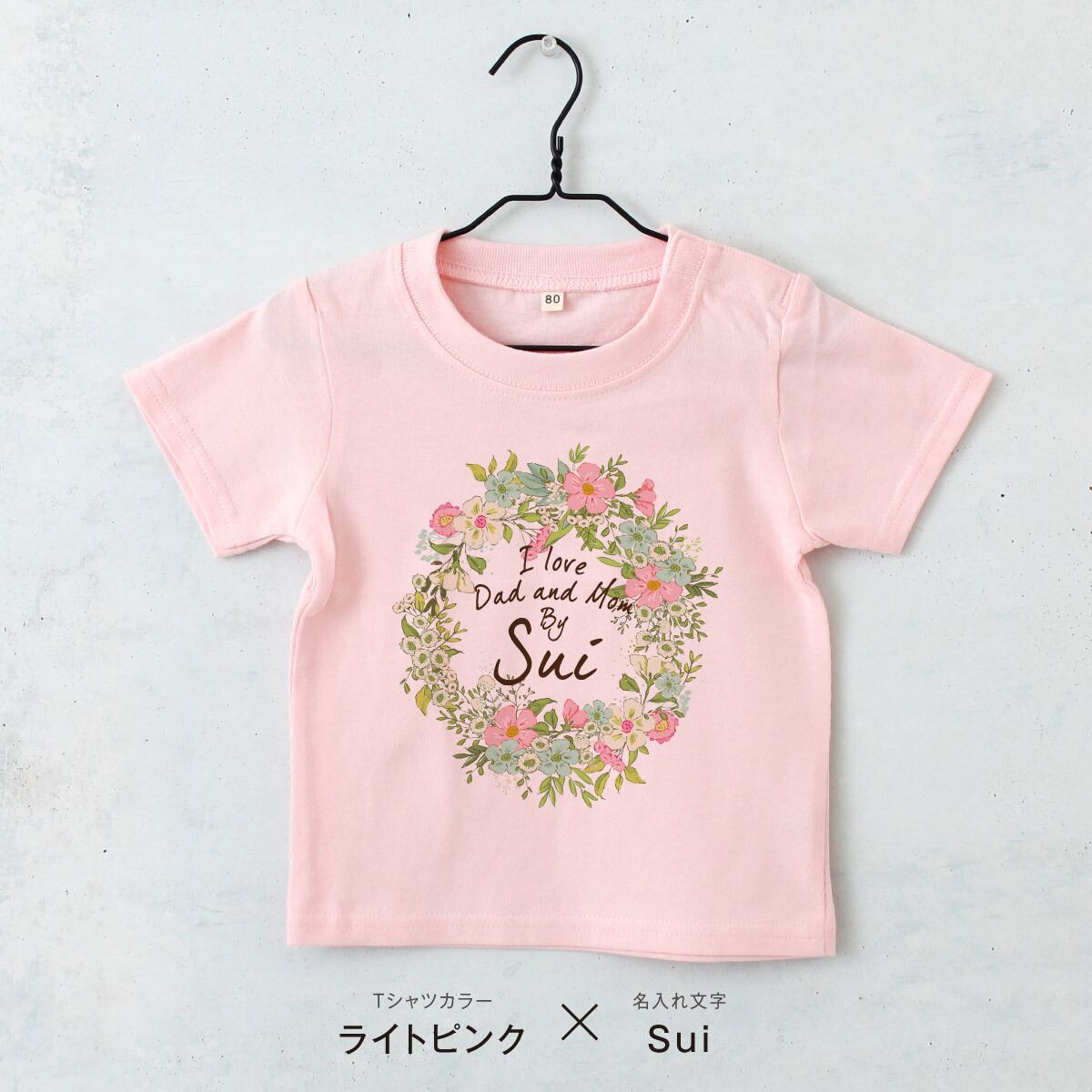 名入れTシャツ キッズ ベビー フラワー01 リース 花 80 90 100 110 120 130 140 150 名前入り 出産祝い ギフト 誕生日 プレゼント 女の子 バースデー 赤ちゃん服 子供服 ネーム おしゃれ かわいい 人気 おそろい 双子 姉妹 スポーツ 運動会 幼稚園 保育園 小学校
