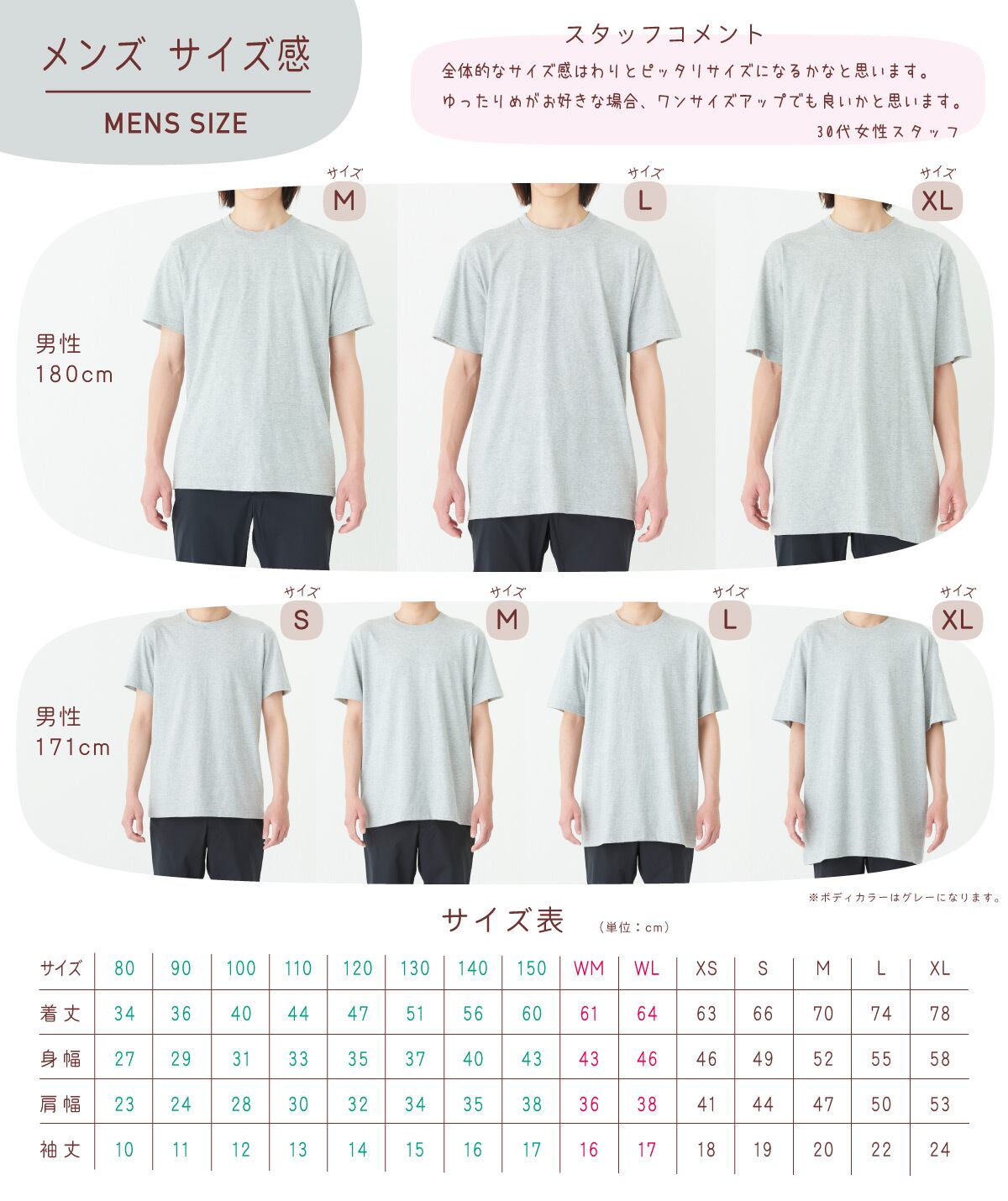 ・WLサイズ(ウーマンL):身丈64/身巾46/肩巾38/袖丈17