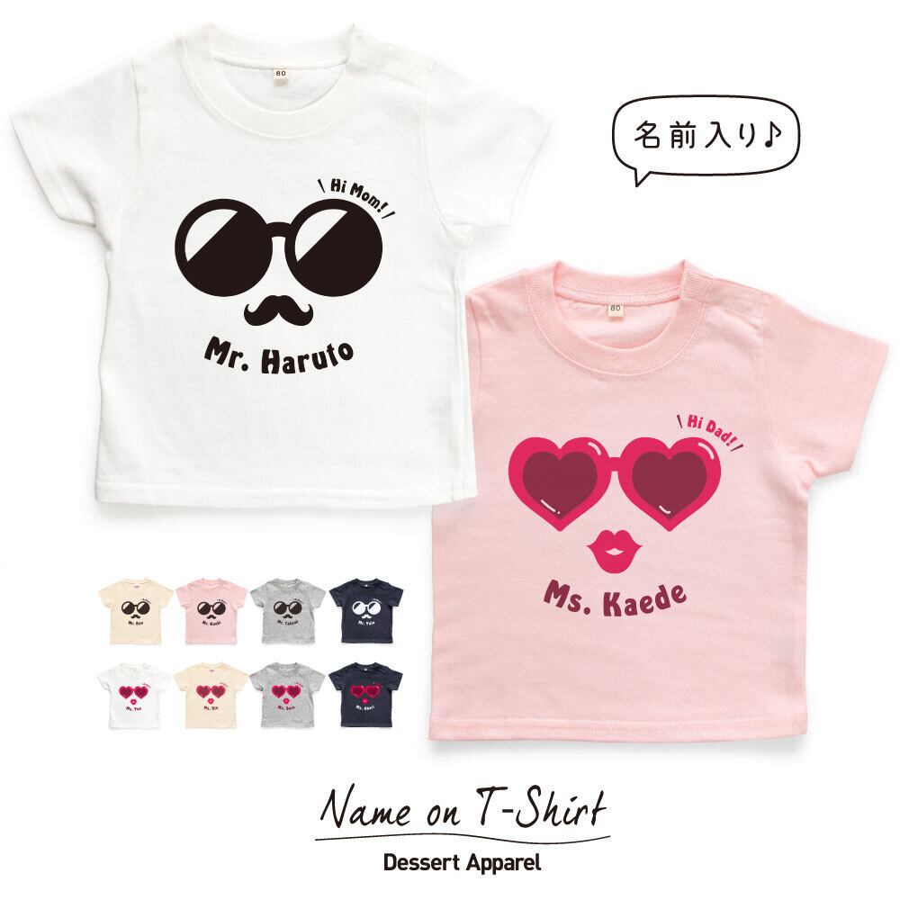 名入れTシャツ キッズ ベビー ヒゲとリップ01 サングラス キス 80 90 100 110 120 130 140 150 名前入り 出産祝い ギフト 誕生日 プレゼント 男の子 女の子 バースデー 子供服 ネーム おしゃれ かわいい 人気 おそろい 双子 兄弟 姉妹 スポーツ 運動会 幼稚園 保育園 | Dessert Apparel