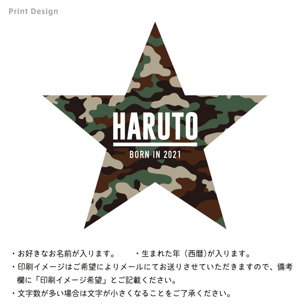 名入れTシャツ キッズ ベビー 迷彩柄スター01 名前入り 80 90 100 110 120 130 140 150 出産祝い ギフト 誕生日 プレゼント 男の子 女の子 バースデー 赤ちゃん 子供服 ジュニア イニシャル ネーム おしゃれ かわいい 人気 おそろい 双子 兄弟 姉妹 運動会 幼稚園 保育園 | Dessert Apparel