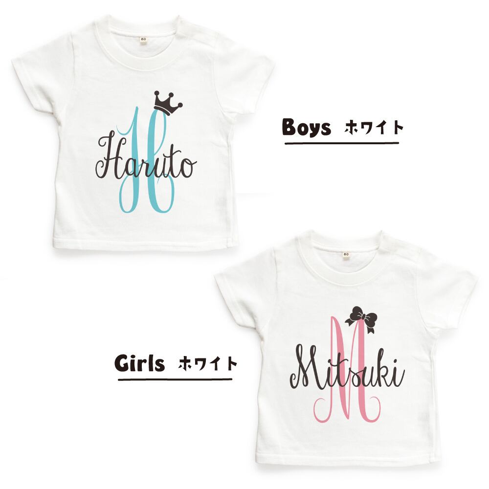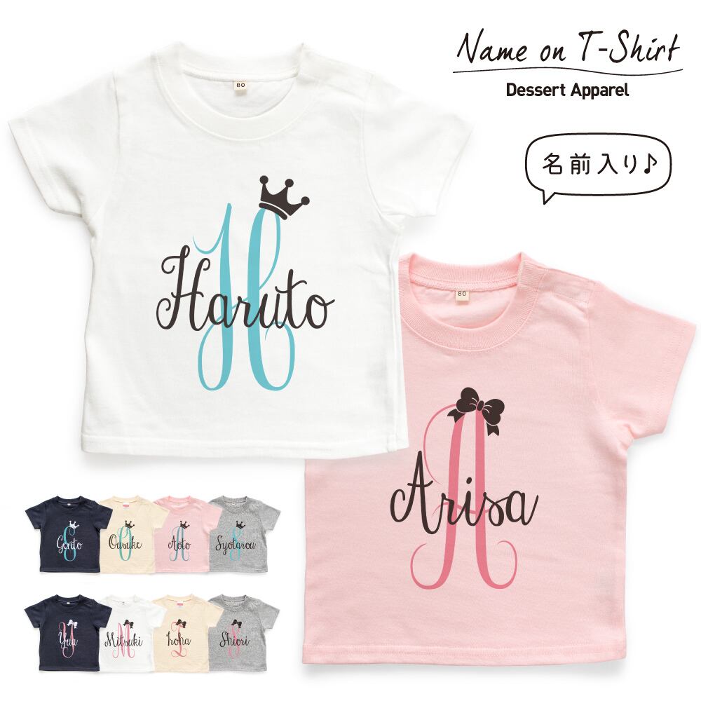 名入れTシャツ キッズ ベビー イニシャル02 王冠 リボン 80 90 100 110 120 130 140 150 名前入り 出産祝い ギフト 誕生日 プレゼント 男の子 女の子 バースデー 赤ちゃん服 子供服 ネーム おしゃれ かわいい 人気 おそろい 双子 兄弟 姉妹 スポーツ 運動会 幼稚園 保育園 | Dessert Apparel