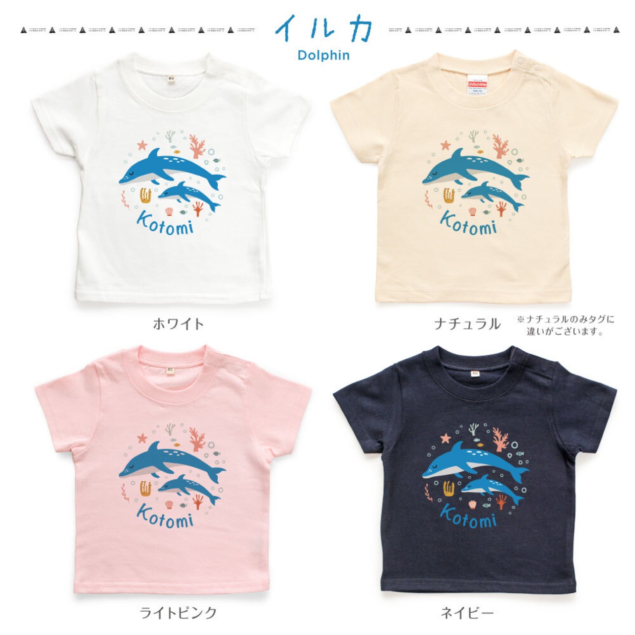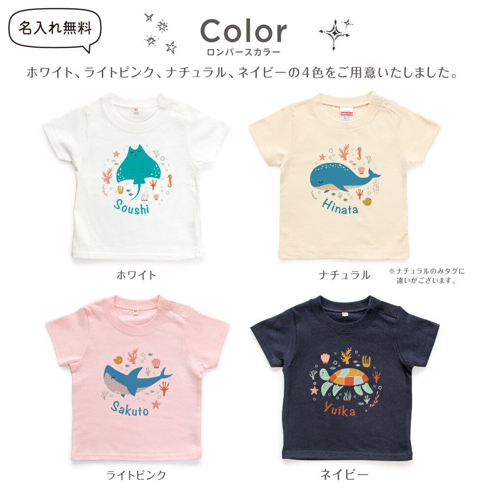 名入れTシャツ キッズ ベビー シーアニマル01 海の動物イラスト サメ クジラ イルカ クラゲ ウミガメ シャチ エイ 名前入り 80 90 100 110 120 130 140 150 出産祝い ギフト 誕生日 プレゼント 男の子 女の子 バースデー 赤ちゃん服 子供服 ジュニア ネーム おしゃれ かわいい 人気 おそろい 双子 兄弟 姉妹 運動会 記念撮影 | Dessert Apparel